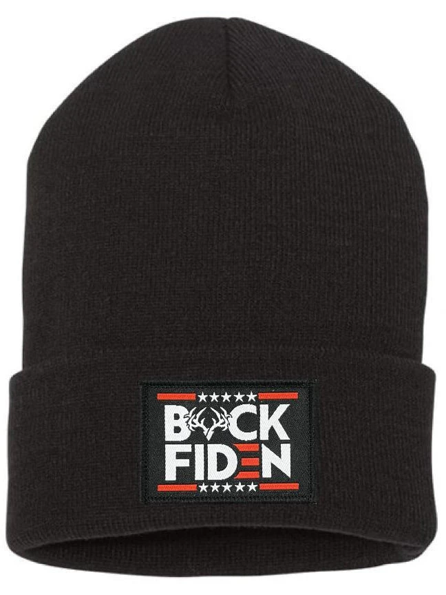 The Buck Fiden Long Beanie is a must wear! This will bring Yuge smiles to over 73,000,000 Patriotic Americans. Decoration – Embroidered patch sewn onto beanie to last even longer.