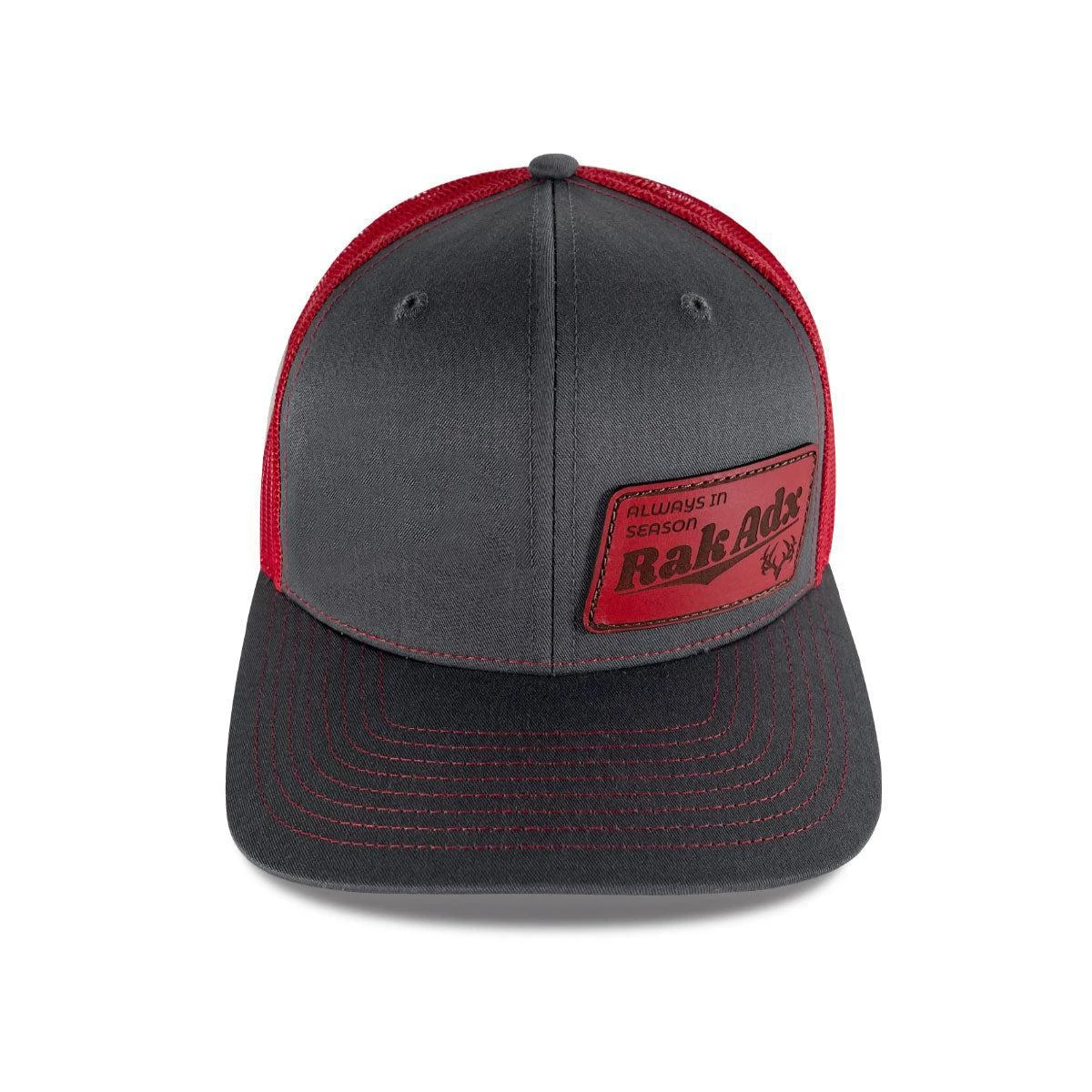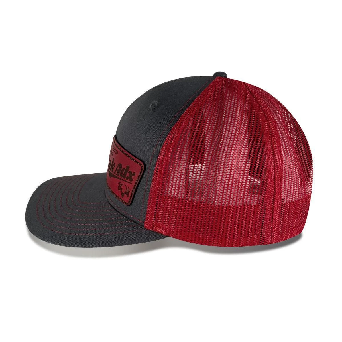 This custom red leather patch hat is our December 2021 Club Hat.