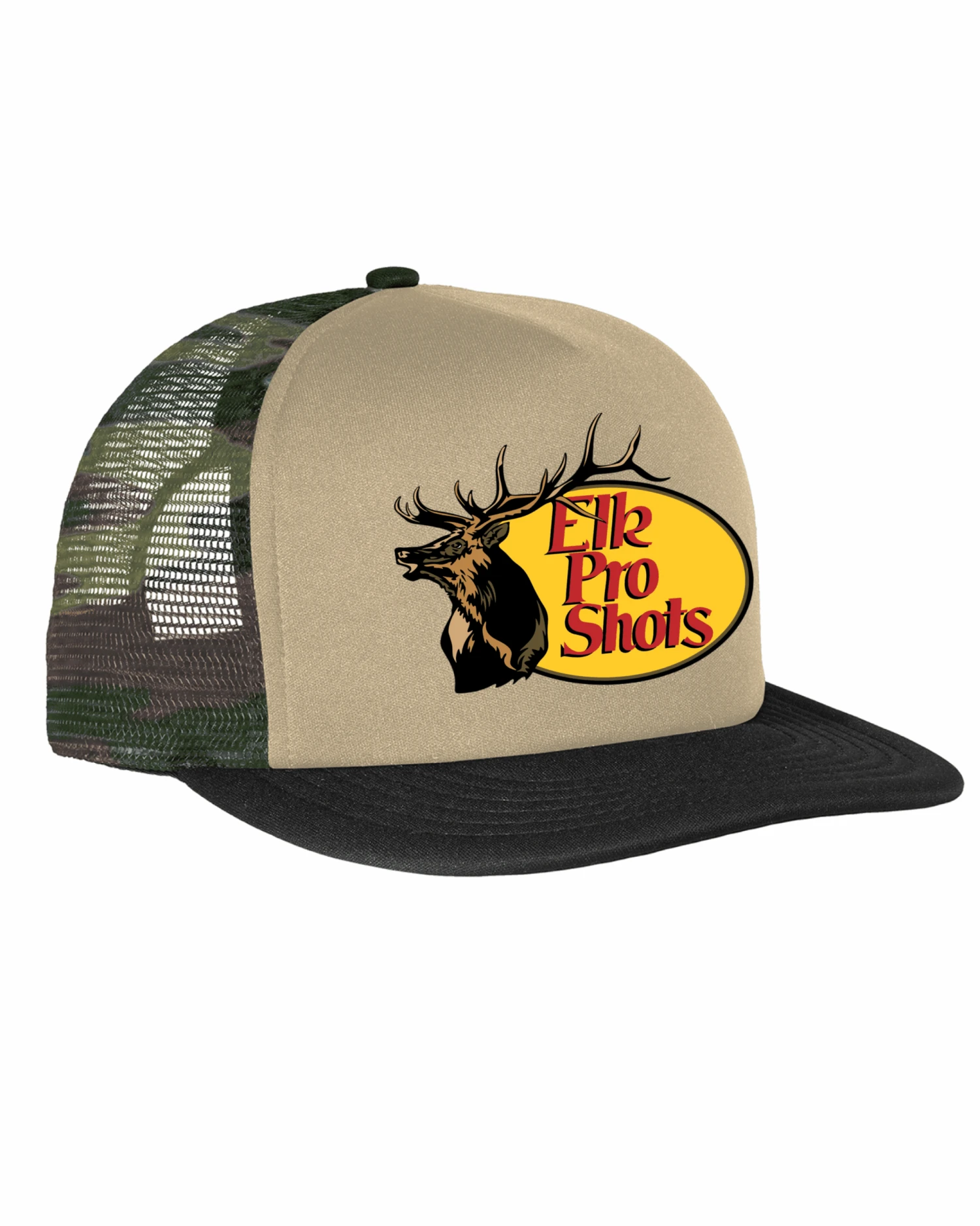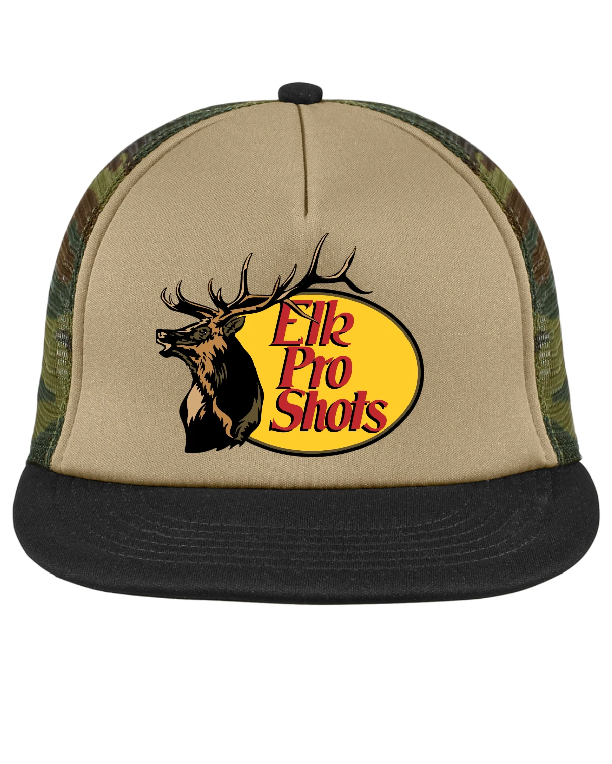 Foam front snapback flat bill hat w/ Elk Pro Shots full color decorated front print.
