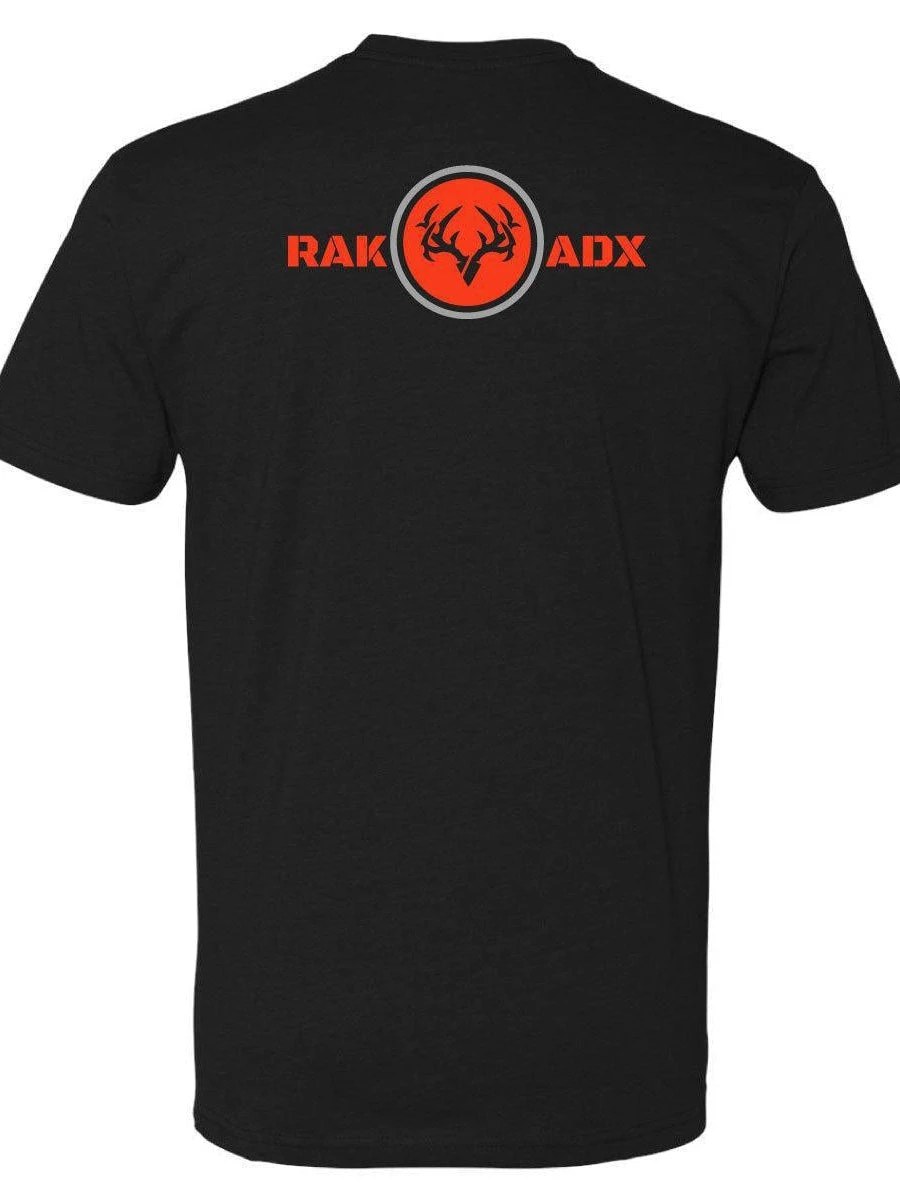 Muley Arrowhead is on a black colored tee. It is form fitting and ultra comfortable. It is made out of combed ringspun cotton/polyester.