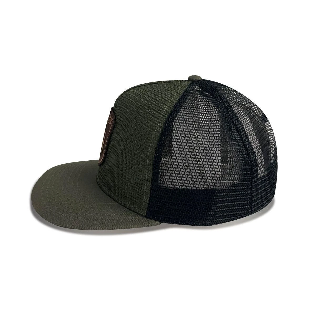 We took the snapback trucker game to the next level with the Mesh Overlay 5-Panel Trucker Snapback decorated with a very cool “RA” Branded Leather Patch, hand sewn to the front. This is our September 2022 Club hat.