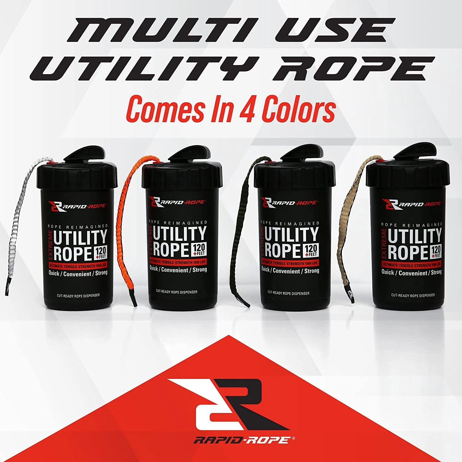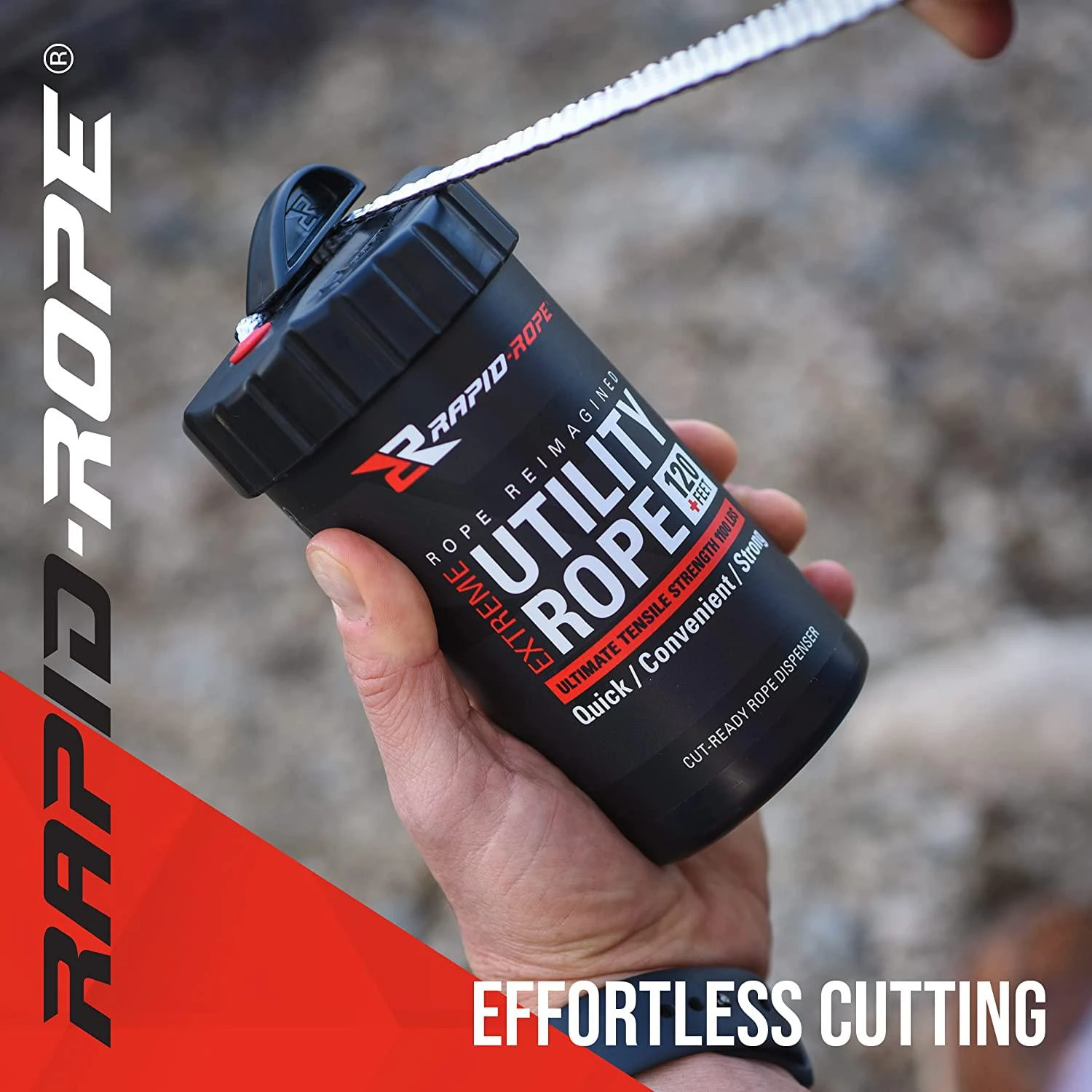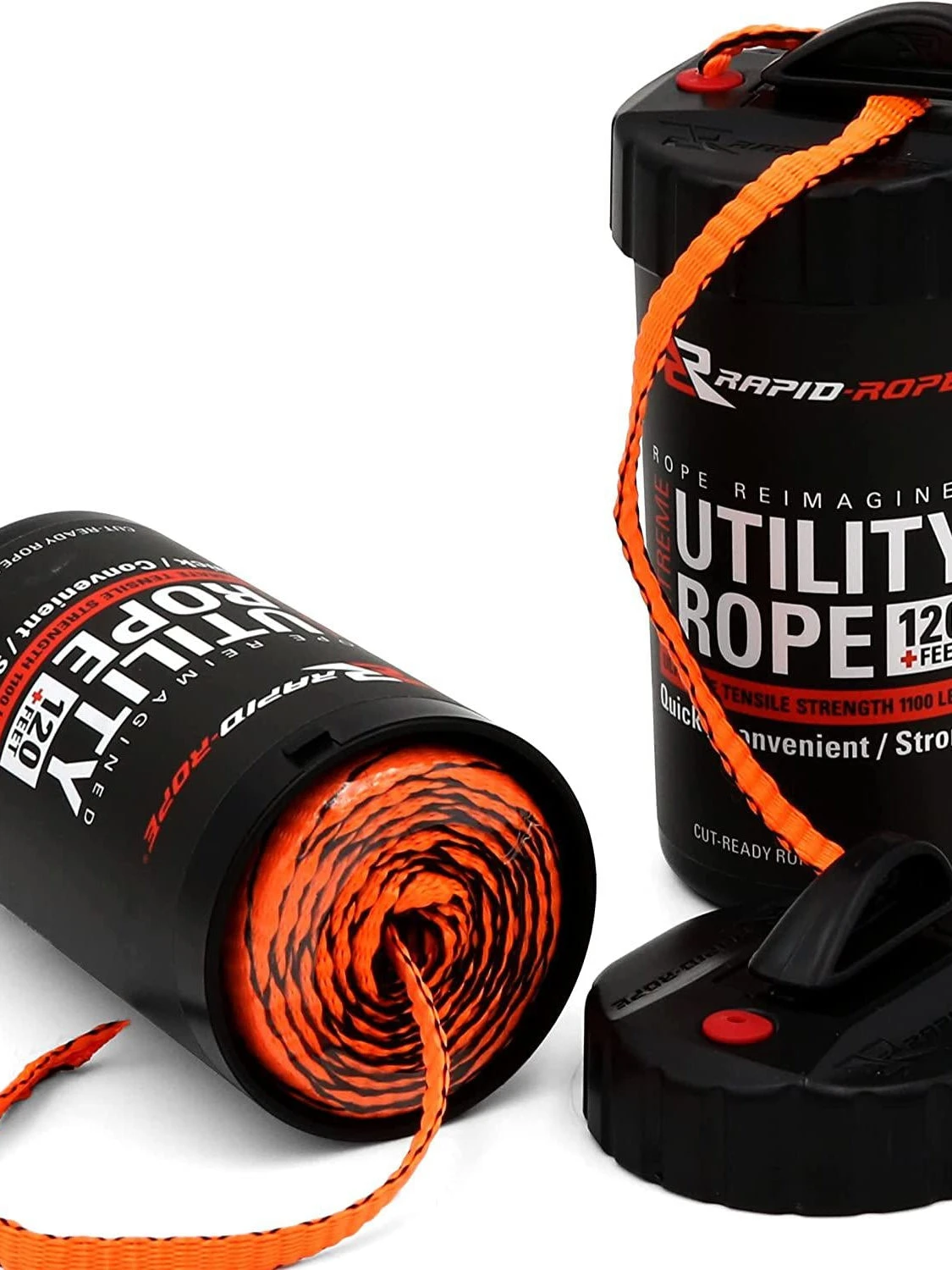 If you’re sick and tired of needing some cord at home or on an adventure only to find it all tangled up, you’re going to love our rope in a can! Rapid Rope gives you 120 feet of 1100 lb test cord in an easy to deploy canister at your fingertips.