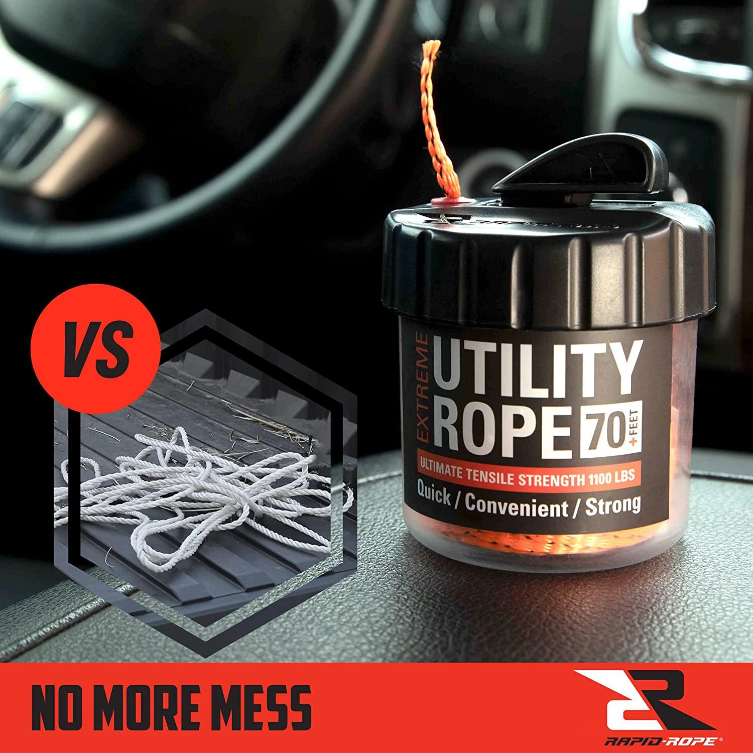 Weather Resistant! Shatterproof canister! Rapid Rope is ready to tie it down! Rapid Rope is perfect for your Truck, RV, ATV, UTV, Boat, Backpack, House, Garage, Cabin. Use it for Camping, Hiking, Fishing, Hunting, Ranching, Gardening and so much more