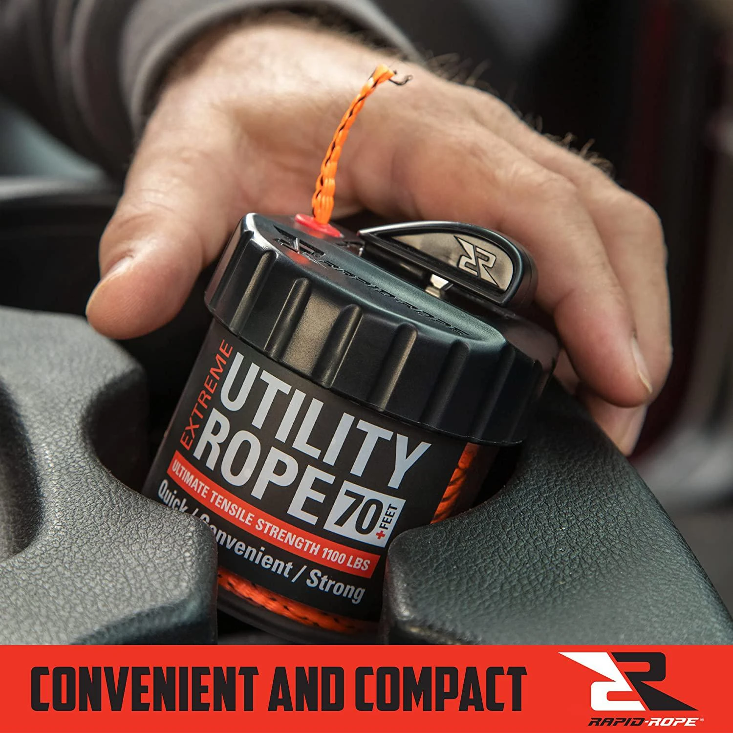If you’re sick and tired of needing some cord at home or on an adventure only to find it all tangled up, you’re going to love our rope in a can! Rapid Rope gives you 70 feet of 1100 lb test cordin an easy to deploy canister at your fingertips.