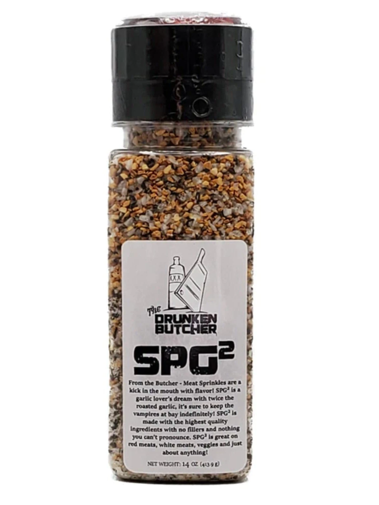 Straight from our friend The Drunken Butcher – SPG2 is kick in the mouth with flavor and a garlic lover’s dream. With twice the roasted garlic, it’s sure to keep the vampires at bay indefinitely! SPGsquared is great on red meat, white meat, veggies and just about anything!