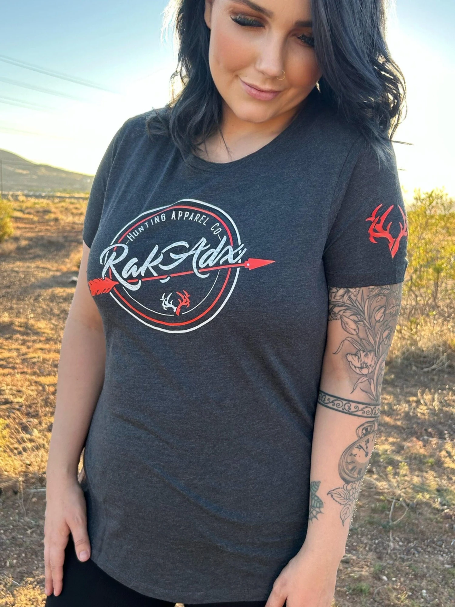 The Womens Bedazzler is on a charcoal colored tee. It is form fitting and ultra comfortable. It is made out of combed ringspun cotton/polyester. The design has jewels on top of the word RakAdx.