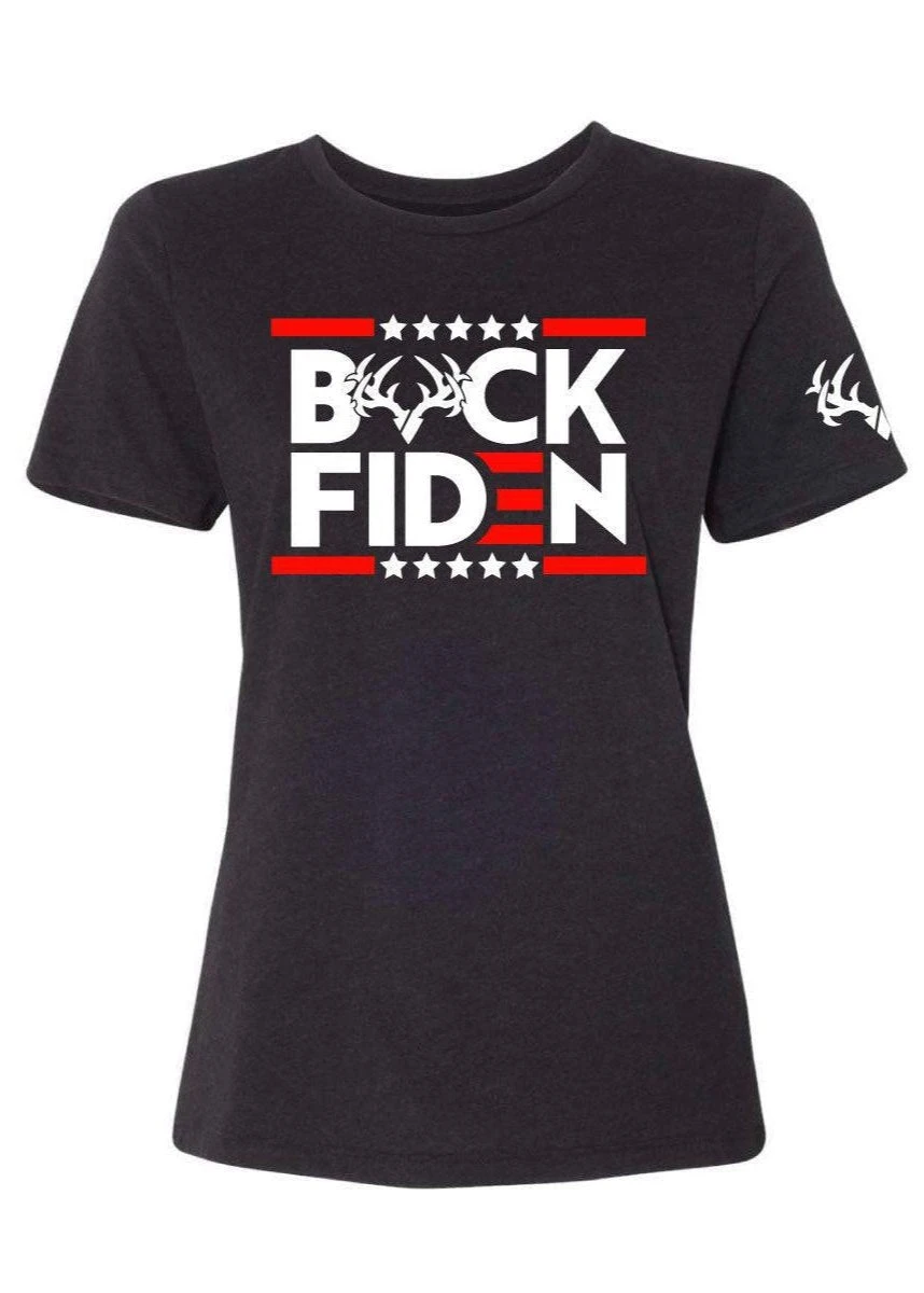The Buck Fiden Womens Tank is a must wear post election! No matter the outcome this will bring Yuge smiles to 73,000,000 Patriotic Americans. Printed on a black blend tee. It is form fitting and ultra comfortable. It is made out of combed ringspun cotton/polyester.