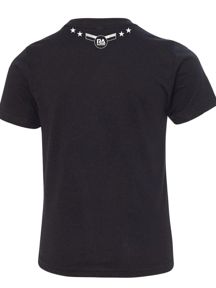 The Youth RakAdx Muley Skull is on a black colored tee. It is form fitting and ultra comfortable. It is made out of combed ringspun cotton/polyester.